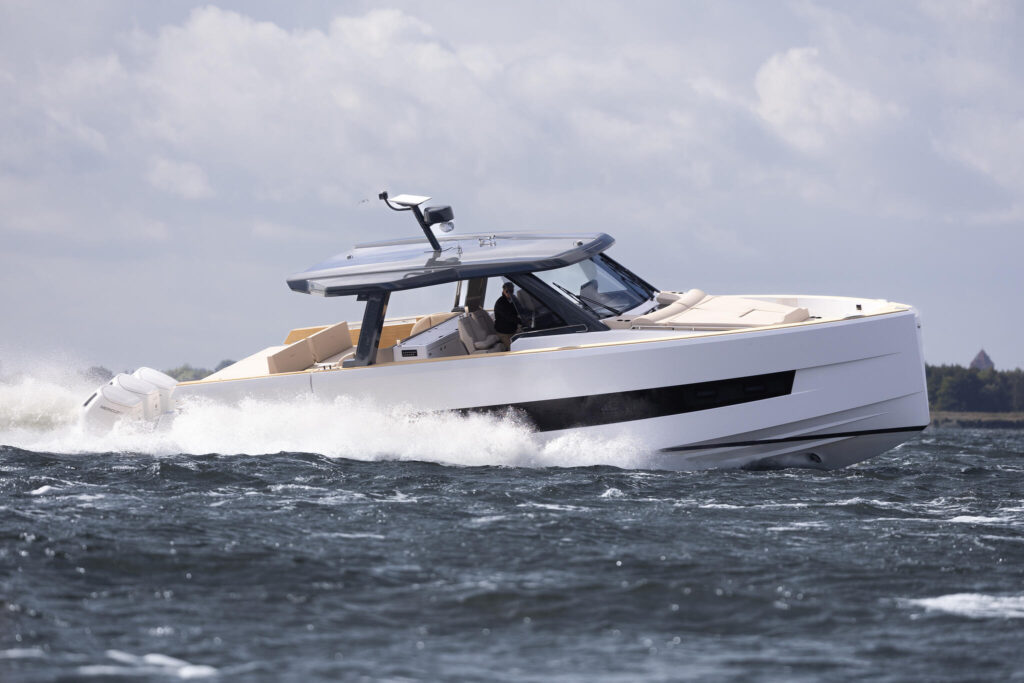Offering generous storage, a hydraulic bathing platform, and fully customizable interiors, this powerboat ensures every journey is as comfortable as it is memorable. The FJORD 490 embodies personalization, allowing owners to adapt the boat to their unique preferences, from sophisticated interior finishes and striking color palettes to an openable balcony and state-of-the-art navigation technology.