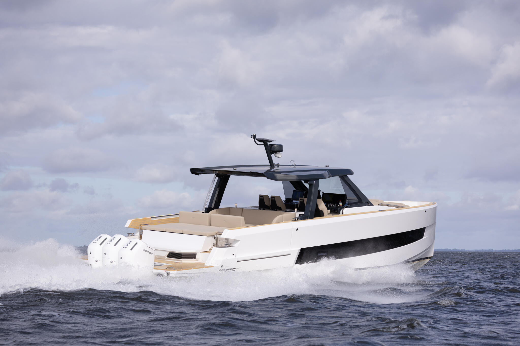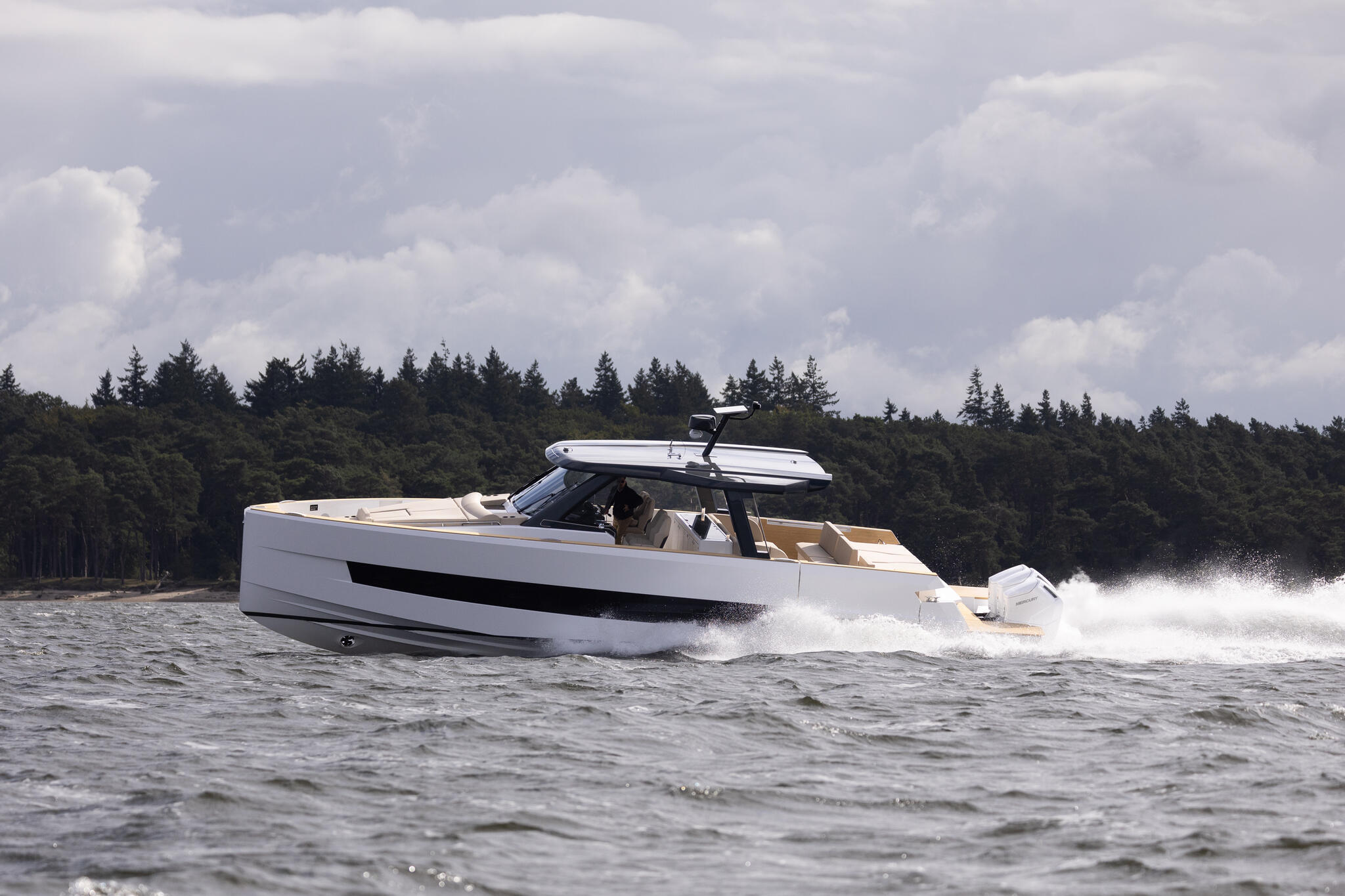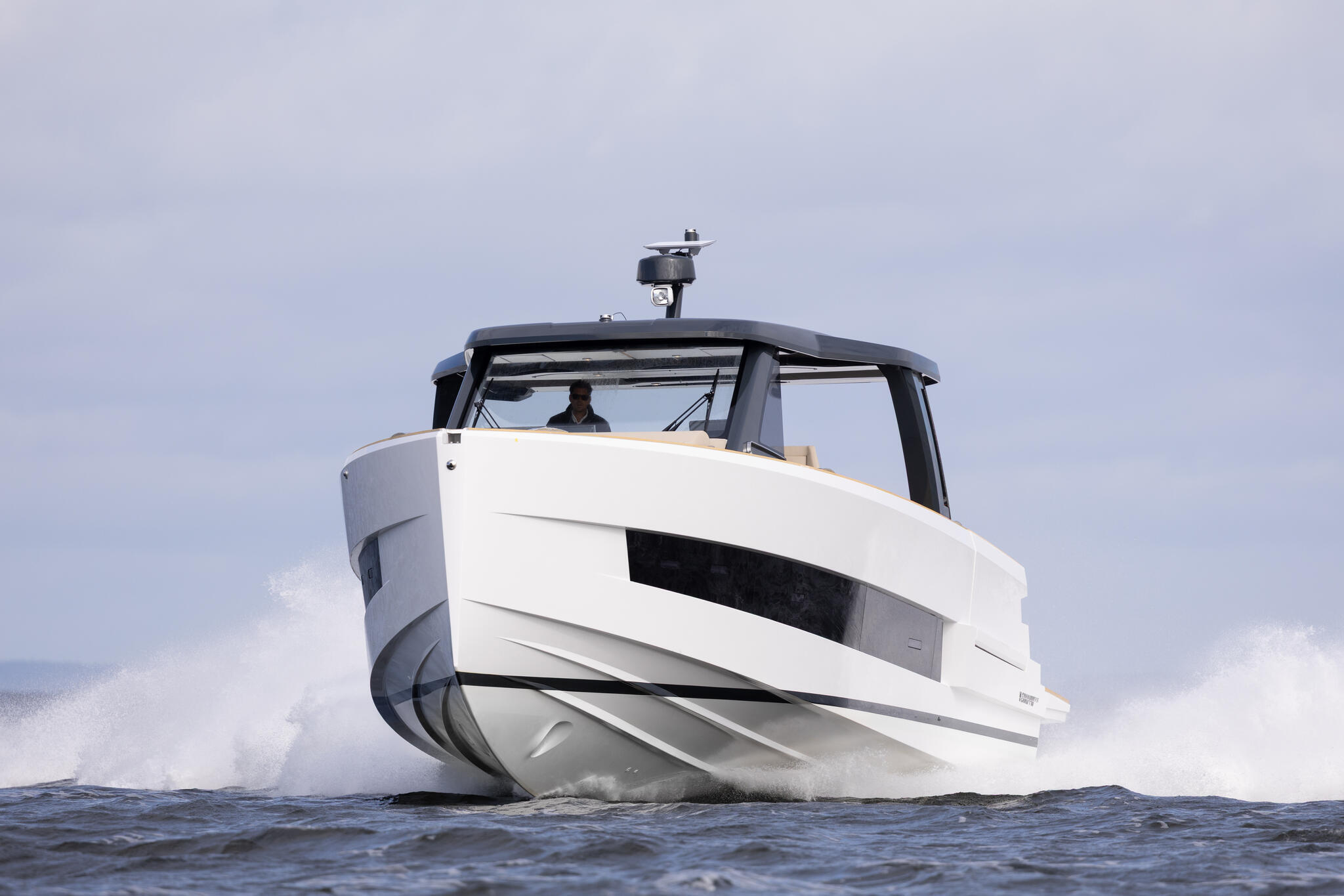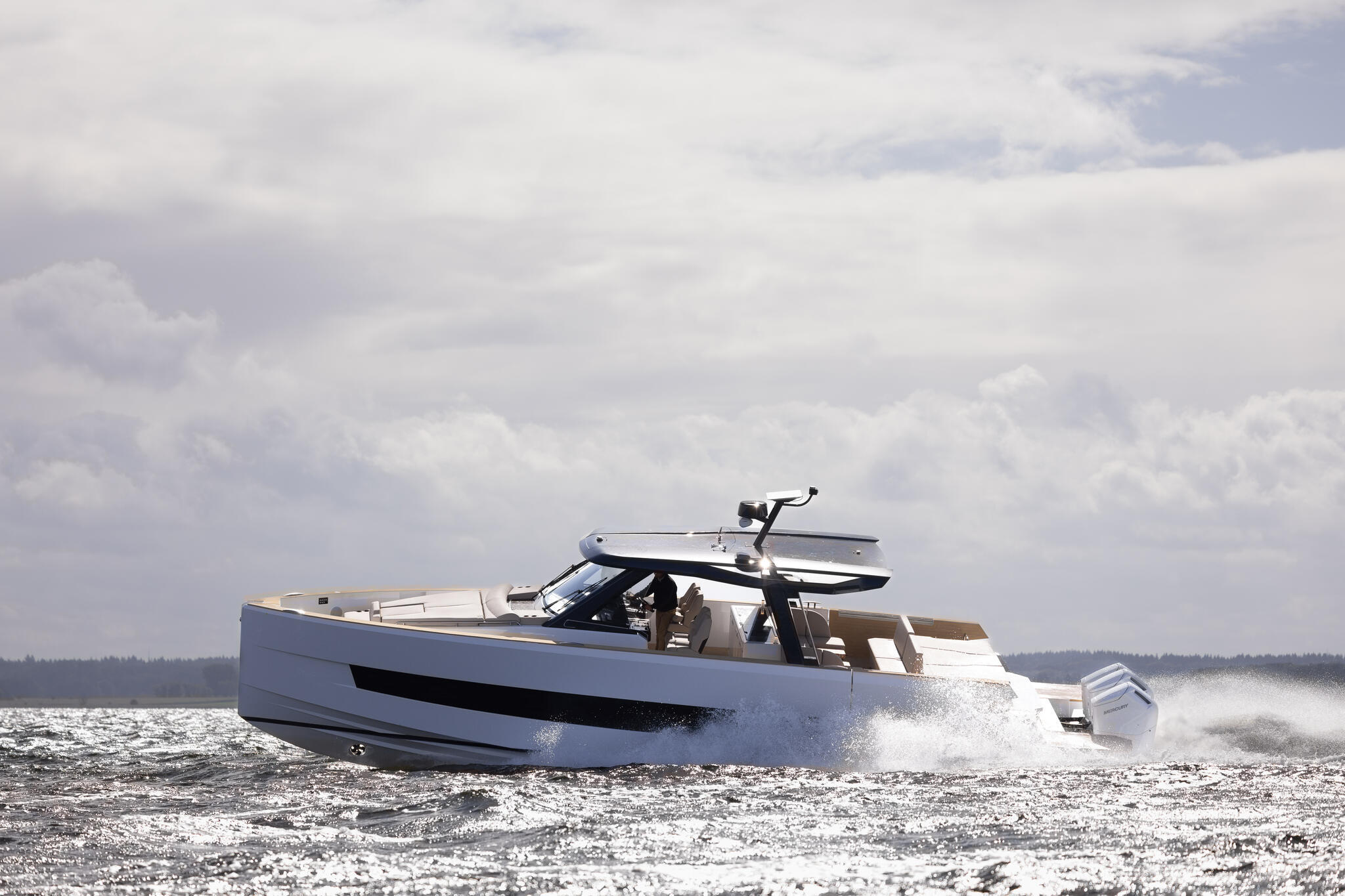 The FJORD 490 SPORT sets a new standard for maritime luxury, combining cutting-edge engineering with a sleek and modern design. This high-performance motorboat boasts a spacious walkaround deck, designed to enhance social interaction and provide seamless movement onboard. Whether basking in the sun or diving into water sports, the expansive deck creates endless possibilities for leisure and adventure.